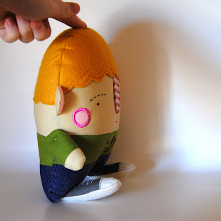 This little gal was a special special request. I had so much fun. It is going out to the daughter of a woman who brought my Etsy shop out of hibernation and then sprinkled it with sweet powdered sugar in the form of utterly cute feedback. She could turn writing feedback into an art-form. She calls her daughter "monster" and her daughter calls her "queen". They sounds perfect for one another. I can imagine the fun they have. Queen mom wanted a little Fiona doll in an Monster outfit for little monster for Valentine's Day. Here she is: